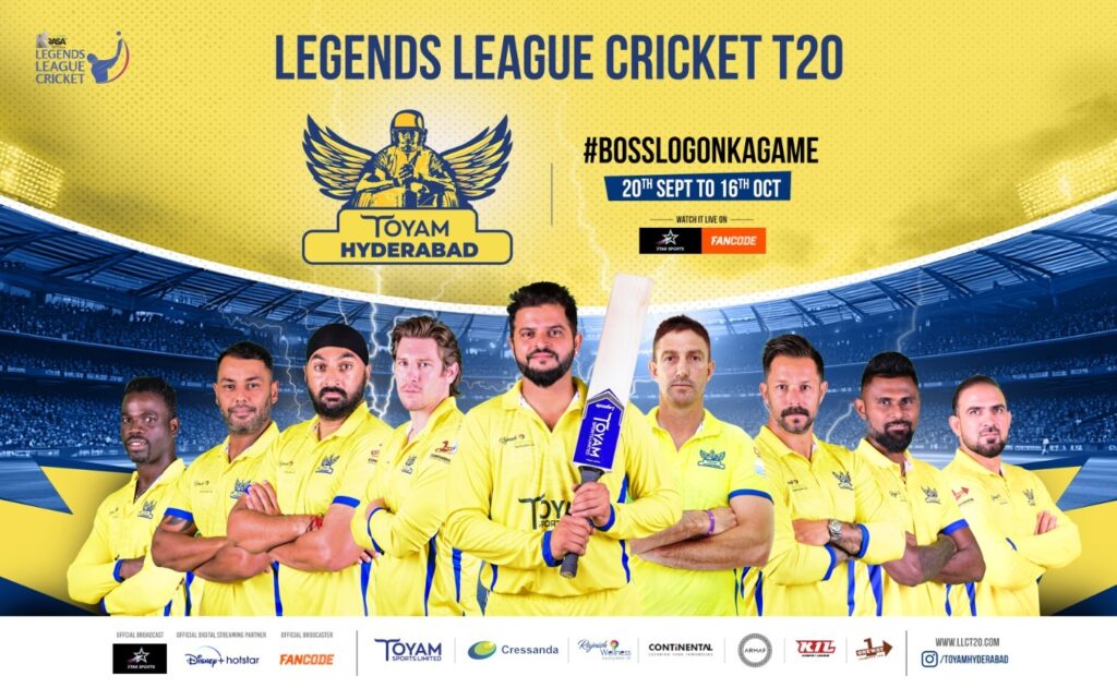In addition to Toyam Sports Limited’s ownership of the ‘Ultimate Toyam Hyderabad’ franchise, the franchise owners for this season’s Legends League Cricket include: India Capitals – GMR group, Southern Super Stars – a multi-corporate consortium led by Qentelli, Manipal Tigers – Manipal Group, Konark Suryas Odisha – Assoctech group, and Gujarat Greats – a consortium of companies based in Gujarat.